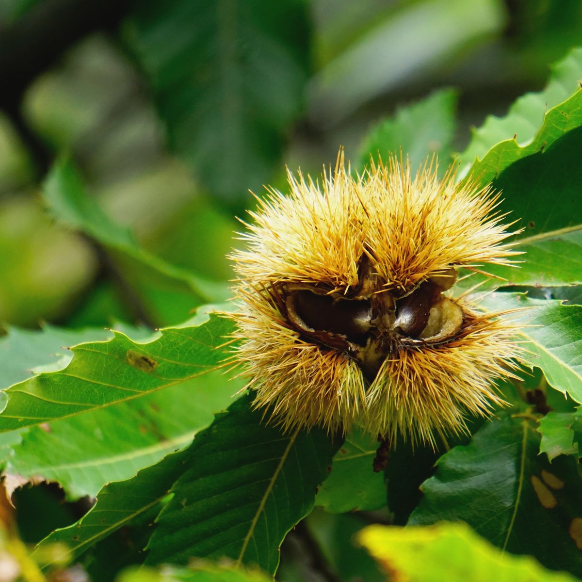 Die Esskastanie oder Edelkastanie trägt auch die Namen Kestenbaum, Keschde, Marone oder Keste. Im Englischen heißt sie „Sweet Chestnut“, was auf ihren süßen Geschmack hinweist. Auch der lateinische Name „Castanea sativa“ ist Programm, obwohl sich die Meinungen hier spalten. Sativa bedeutet im Lateinischen „gesät/gepflanzt“. Die Bezeichnung deutet darauf hin, dass die Esskastanie schon früh kultiviert wurde. Doch auch die Übersetzung „sättigend“ findet sich im Netz.