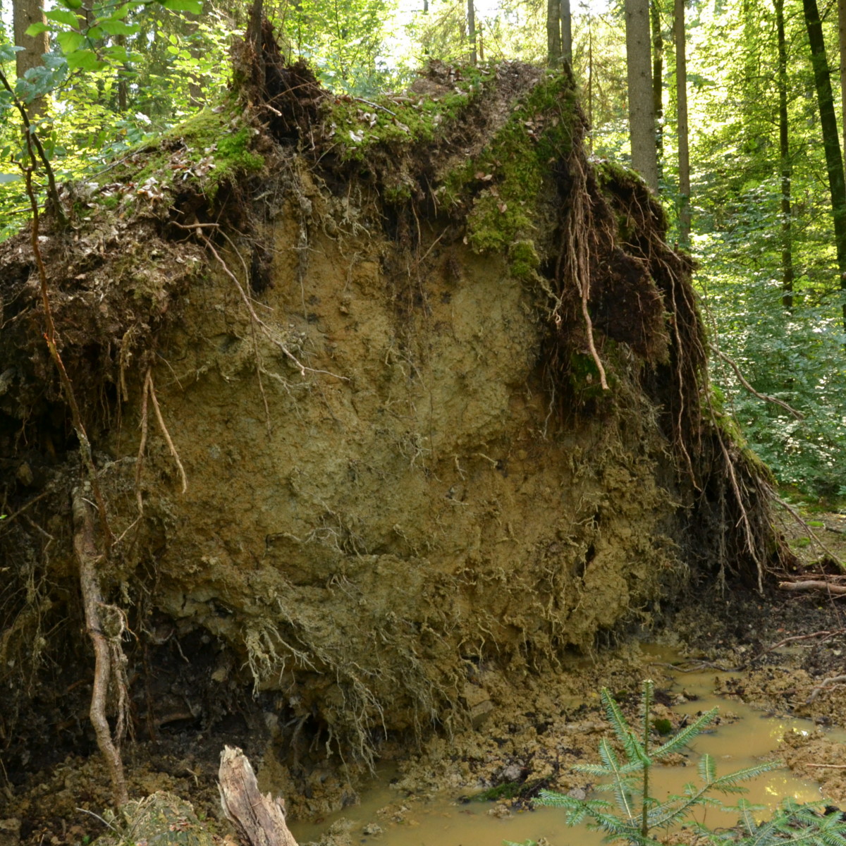 Die Fichte gehört zu den Baumarten, die eine ausreichende Wasserversorgung benötigen – gerade auf suboptimalen Böden, denn dort wurzelt sie eher flach und ist weniger gut an die Grundwasserversorgung angeschlossen. Die steigenden Temperaturen im Sommer zusammen mit abnehmenden Niederschlägen schwächen die Baumart enorm. Die Fichte wurde nur wegen ihren guten Baueigenschaften weit über ihr eigentliches Verbreitungsgebiet in Monokulturen angebaut. Hier sind die Bedingungen meist nicht sehr gut. Staunässe, verdichtete Böden oder starke Schwankungen im Säure-Basen-Haushalt tragen zur flachen Wurzelbildung bei. Doch auch Trockenstress ist für die Baumart ein großes Problem, da sie das aus ihrem natürlichen Verbreitungsgebiet nicht gewohnt ist. Im Extremfall wird der Baum bei einem Sturm mitsamt des Wurzeltellers aus dem Boden gerissen.