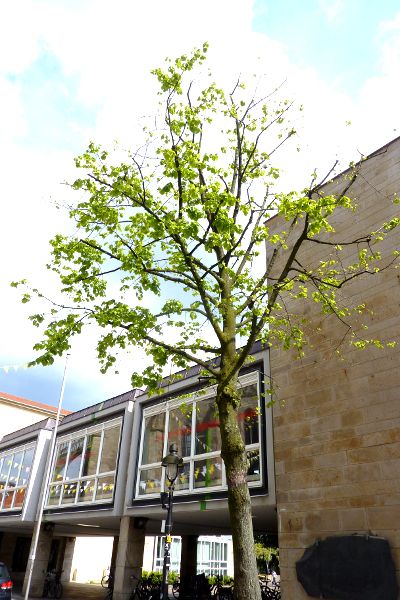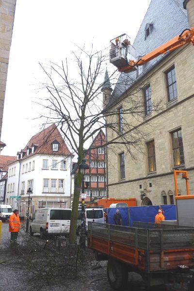 Die Linde gegenüber dem Ratskeller in Osnabrück. Der Baum strotzt, trotz der kleinen Baumscheibe, offensichtlich vor Gesundheit – Streusalz wurde im Rahmen des Winterdienstes (noch) nicht eingesetzt. (Foto: Presseamt der Stadt Osnabrück)