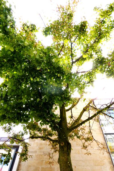 Die Krone der Linde wurde im Jahre 2012 stark zurückgeschnitten. Der Rückschnitt erfolgte ohne jeden baumpflegerischen Hintergrund, lediglich um das Salz im Gewebe des Baums „relativ zu verdünnen“. Der Austrieb war auf Grund des Streusalzes im Boden und im Gewebe des Baums ziemlich „müde“ und „lustlos“. (Foto: Klaus Schröder)
