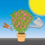 Wer sich mediterranes Flair in den eigenen Garten, Hof oder auf den Balkon holen möchte, ist mit einem Oleander gut beraten. Die wunderschönen Blüten erstrahlen in weißen, gelblichen oder rosa Farbtönen und verbreiten einen angenehmen, an Urlaub erinnernden Duft. Der Oleander gedeiht als Hecke, Busch oder kleines Bäumchen im Kübel und lässt sich damit auf die Bedürfnisse des eigenen Gartens anpassen. Die Pflanze stammt ursprünglich nicht aus unseren Breitengraden und braucht spezielle Pflege. Doch der Aufwand lohnt sich: Denn mit einem Oleander holen Sie sich wahre Urlaubsgefühle in Ihren Garten!