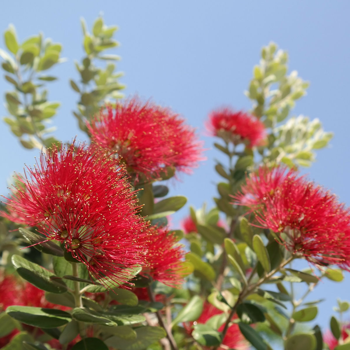 Pohutukawa Tree – schon der Name ist ein Fest. Der auch als Eisenholzbaum oder New Neuseeland Christmas Tree bezeichnete Baum ist einer der speziellsten Weihnachtsbäume in anderen Ländern und einzigartig innerhalb der Weihnachtsbräuche international. Seine Superkraft: Zum Fest schmückt er sich einfach selbst. Denn exakt zur Weihnachtszeit entfaltet der neuseeländische Weihnachtsbaum eine beispiellose und eindrucksvolle Blütenpracht. Nur dann trägt er seine charakteristischen puscheligen Pinselblüten. Und wie es sich gehört, erstrahlen sie dem Anlass angemessen in der klassischen Weihnachtsfarbe Rot.