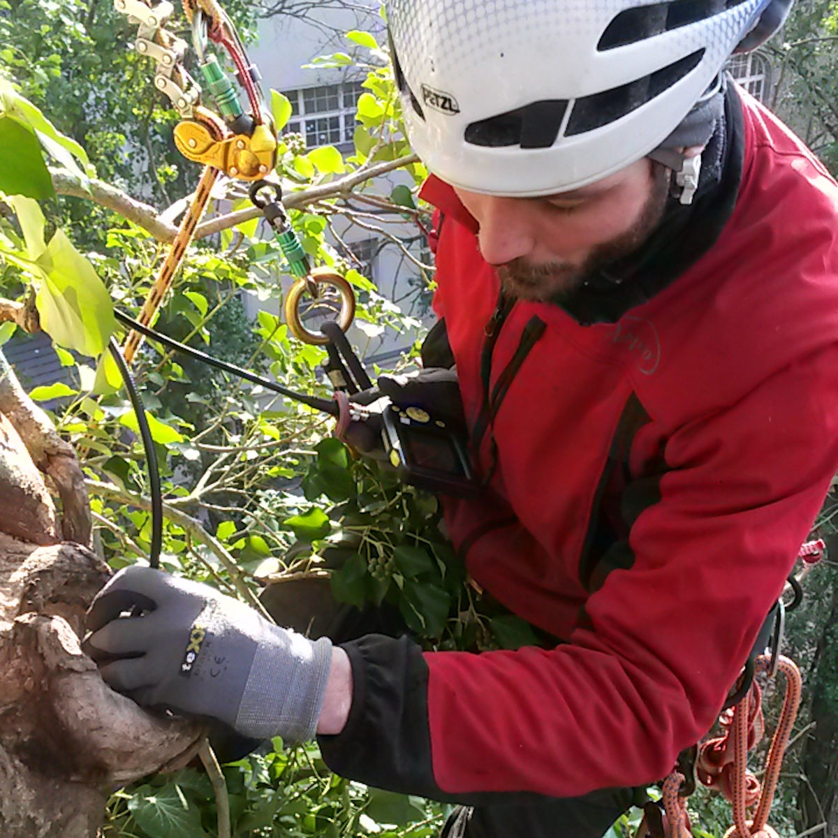 Max Backoff sieht aber nicht nur in der ökologischen Baubegleitung oder seiner Tätigkeit als Arten- und Naturschützer eine große Schnittmenge zur Baumpflege mittels Seilklettertechnik. „Ich kann immer wieder nur an meine Kolleg*innen appellieren, ihre Verantwortung als qualifizierte Fachkraft für Baumpflege ganzheitlich wahrzunehmen“, wünscht sich Backoff. Dazu gehören für ihn nicht nur die Grundkenntnisse im Artenschutz und das Wissen rund um Baumhöhlen, sondern auch die umsichtige Ausführung von Baumarbeiten. Max Backoff kann nur jeder*m empfehlen, sich in diese Richtung weiterzubilden, denn niemand außer den Baumkletter*innen würde so nah an der Natur arbeiten – auch im urbanen Bereich – wie sie selbst.