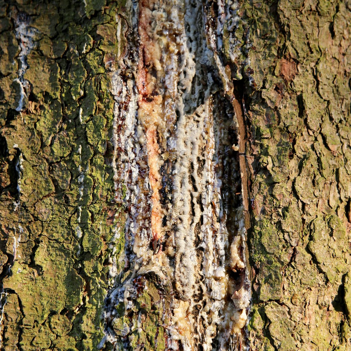 Durch Lufteintritt sterben die Zellen ab. Der Baum bildet Wundkallus und eine Barrierezone und beginnt mit der Abschottung.