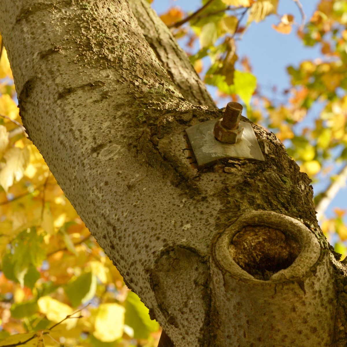 Stand der Technik war, bis aufs gesunde Holz faule Stellen an Bäume auszuhöhlen. Dabei entstanden riesige Wunden, die mit Gewindestangen gesichert wurden. Um die Standsicherheit zu gewährleisten, mauerten die Baumpflegefirmen hohle Stämme aus oder füllten sie mit Beton.