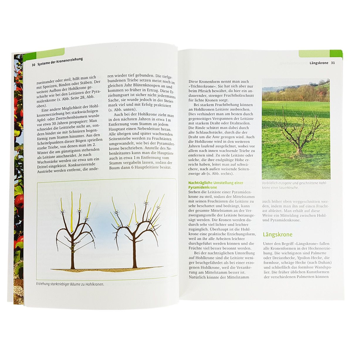 Auf den ersten Blick kommt das Buch etwas unscheinbar daher. Das kleine A5-Format und die wenigen Seiten könnten den Eindruck erwecken, dass es für tiefere Einblicke schlicht an Platz mangele. Doch weit gefehlt. Das Büchlein bietet ab der ersten Seite kompakt die wichtigsten Themen zum Obstschnitt. Pardatscher beginnt mit interessanten Grundlagen zu den Themen Wuchs, dem Hintergrund des Schnittes und den Reaktionen verschiedener Pflanzen auf den Schnitt. Was passiert bei starkem oder schwachem Schnitt? Welcher Trieb wächst stärker und woher kommt das? Diese Fragen beantwortet der Autor kurz und prägnant auf leicht verständliche Weise.