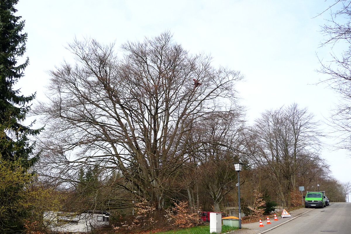 Ziel ist die Herstellung der Verkehrssicherheit und des Lichtraumes zu den angrenzenden Gebäuden. Gleichzeitig wird eine Kronenpflege durchgeführt.