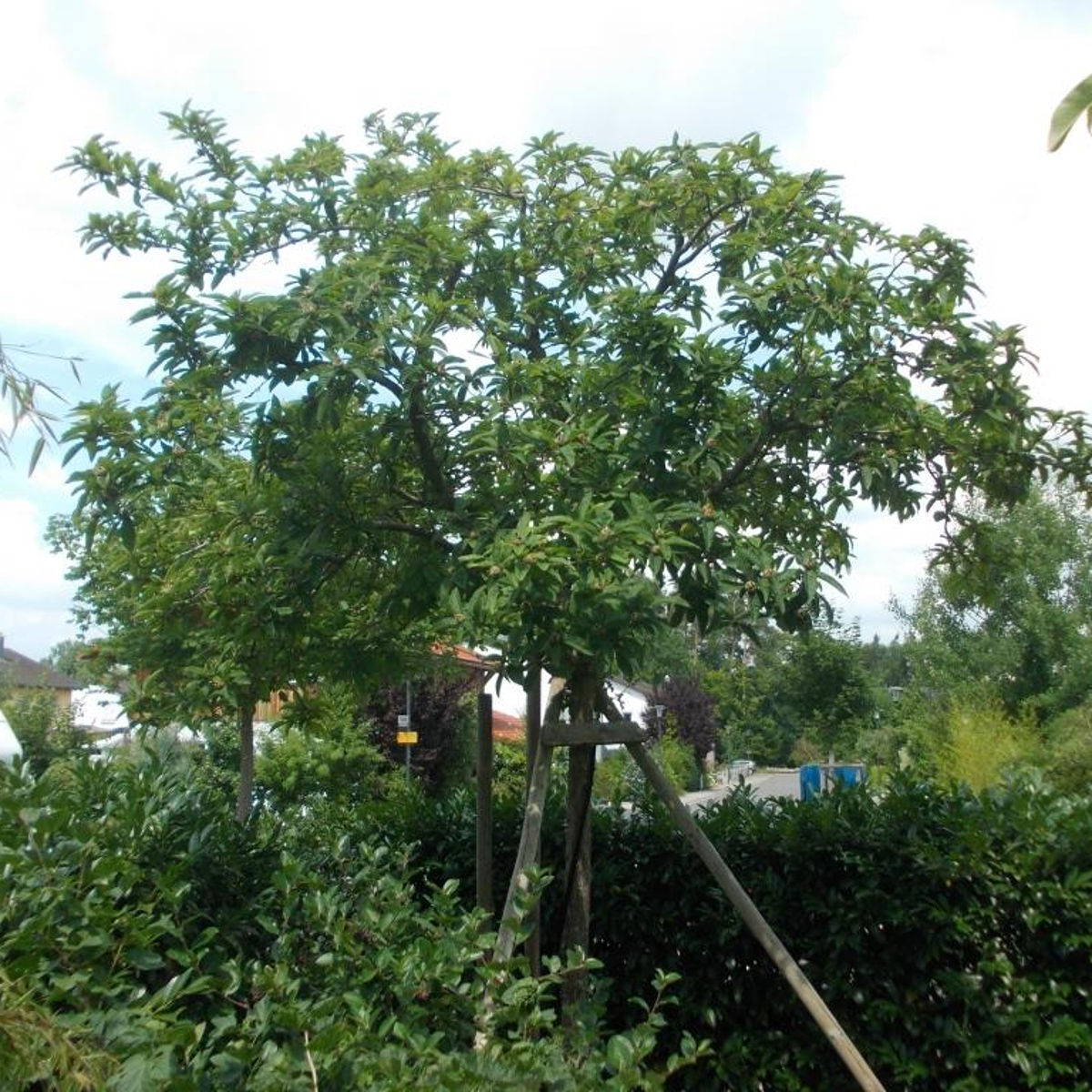 In Ihrem Fall handelt es sich zwar um einen Obstbaum, jedoch um eine alte und in Vergessenheit geratene Art – die Mispel. Auch sie bringt schmackhafte und gesunde Früchte hervor, besitzt jedoch nicht die Sortenvielfalt von Apfel- oder Birnbäumen. Das Veredeln Ihres Baumes hatte deshalb auch einen anderen Zweck. Hier geht es nicht um Fruchtqualität oder Lebensdauer, sondern um die Baumform. Die Mispel so zu erziehen, dass sie einen geraden, starken und unverzweigten Hochstamm bildet, ist nur mit Glück und hoher Anstrengung möglich.
