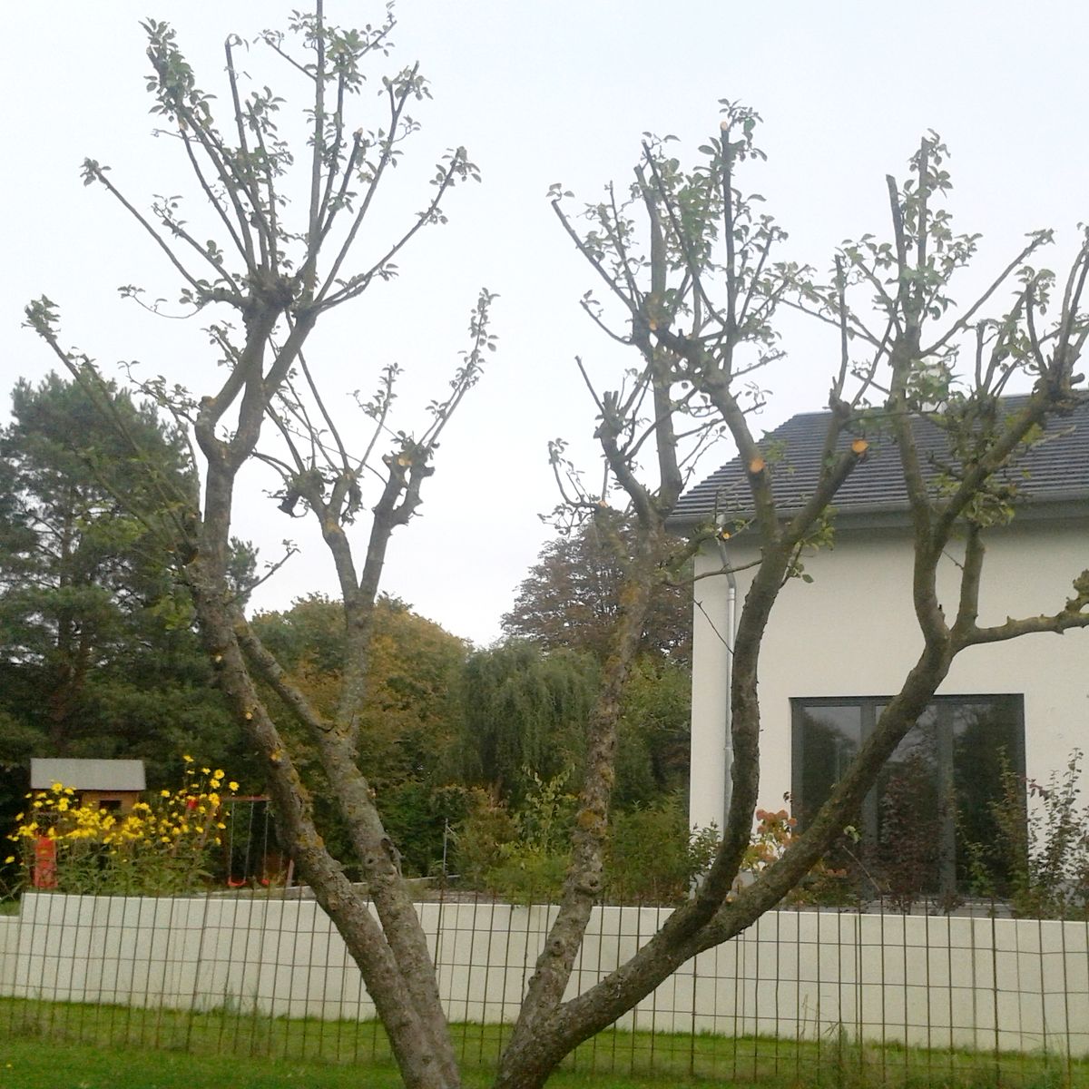 Auf einer ehemaligen Gärtnerei entstanden kürzlich private Wohnhäuser. Ein Teil der alten Obstbäume ist noch vorhanden, aber stark vernachlässigt. An einem der Apfelbäum wurde die ganze Krone gekappt, worauf dieser mit unzähligen Wassertrieben reagierte. Diese Triebe kürzten wir auf eine Höhe von knapp einem Meter bis zu den ersten Blattansätzen.