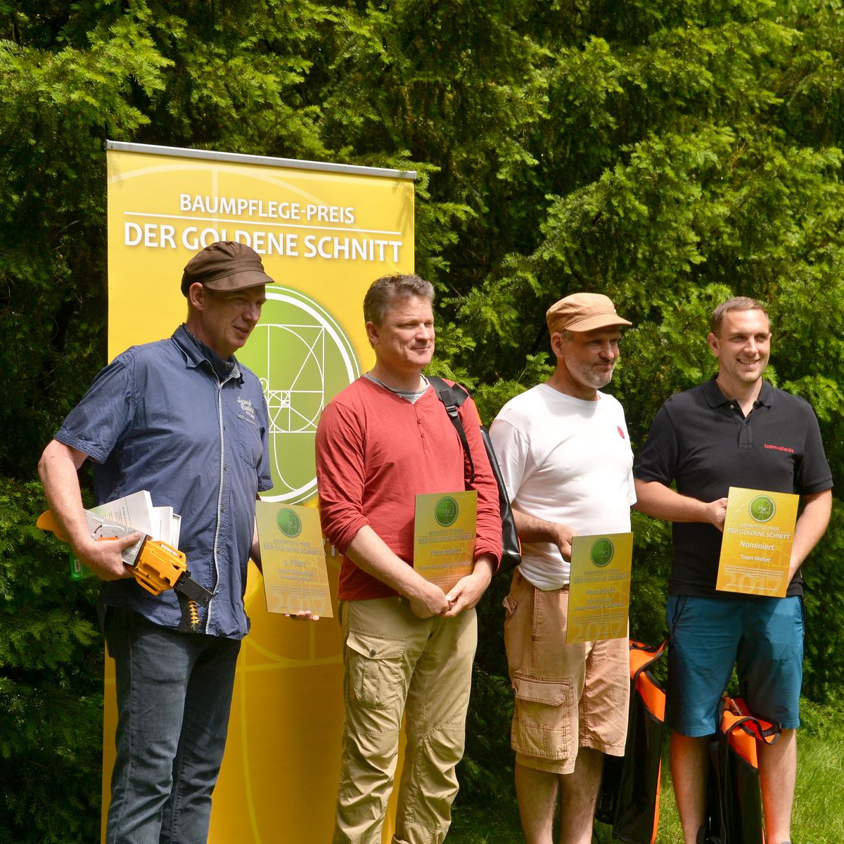 Neben den prämierten Baumpflegefirmen waren noch weitere sechs Firmen mit ihren Schnittmaßnahmen nominiert. Alle besonders gelungen Beiträge der Preisträger und Nominierten stellt das Baumpflegeportal ausführlich mit Bildern und Videos im Baumpflegeportal vor. Der Dank des Baumpflegeportals gilt allen Teilnehmern des Goldenen Schnitts 2017, die mit ihren eingereichten Arbeiten gezeigt haben, dass guter Baumschnitt keine Seltenheit ist. Auch den Förderern und Sponsoren, und im Besonderem freeworker, climbtools, Baumpflegershop Kusche und TASPO Baumzeitung für die bereitgestellten Preise, gilt der Dank des Baumpflegeportals. Wir freuen uns schon auf die Bewerbungen zum Goldenen Schnitt 2019. Denn wer gute Arbeit leistet, darf dies auch zeigen.